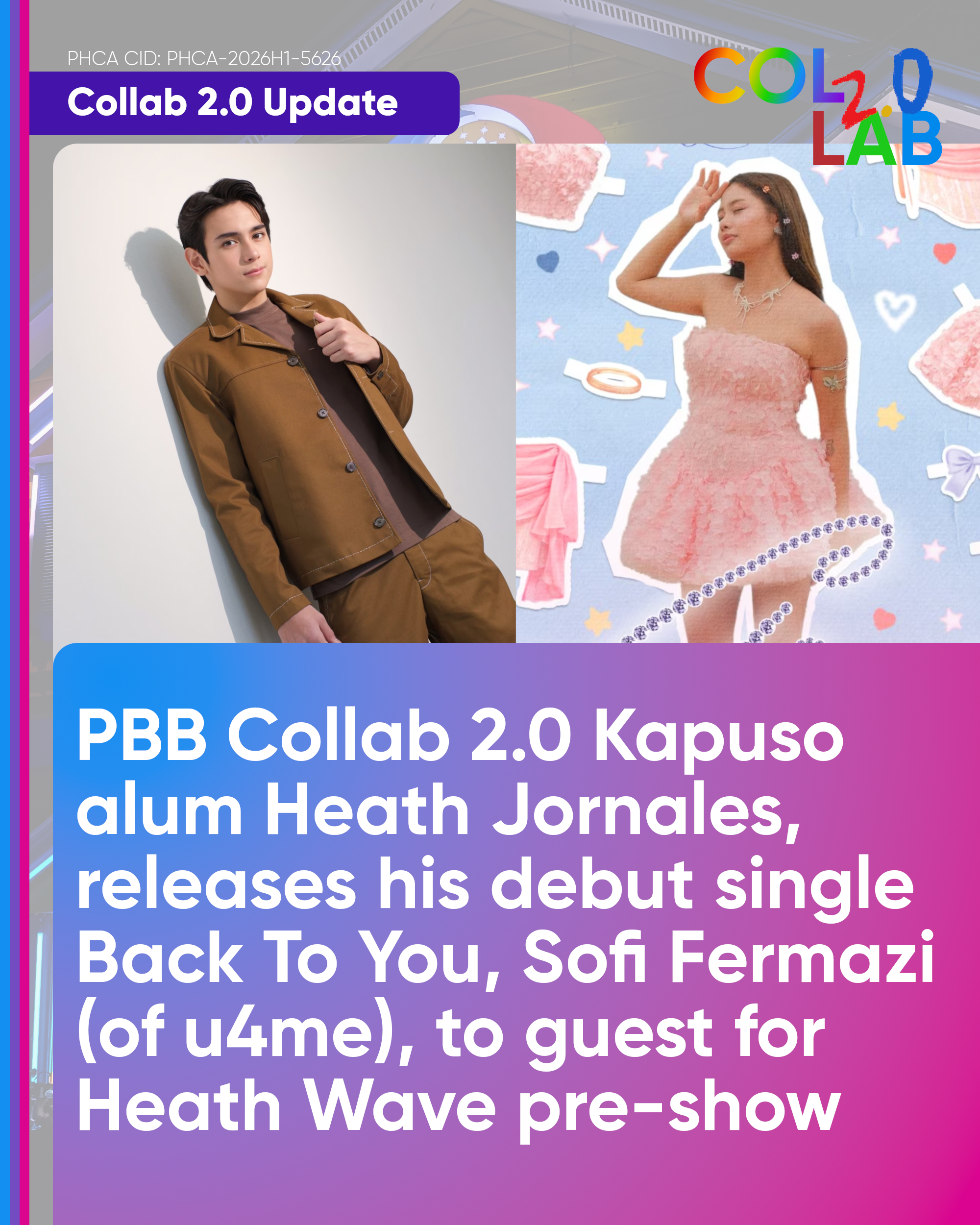 Pinoy Big Brother Celebrity Collab Edition 2.0 2nd Kapuso Second Big Placer, Actor of Never Say Die, and Star Music-Sparkle Artist Heath Jornales, has recently released his new debut single, titled Back To You, ahead of the Heath Wave: The Ultimate Fan Jam on Sunday, April 19, 2026, at 19:00.