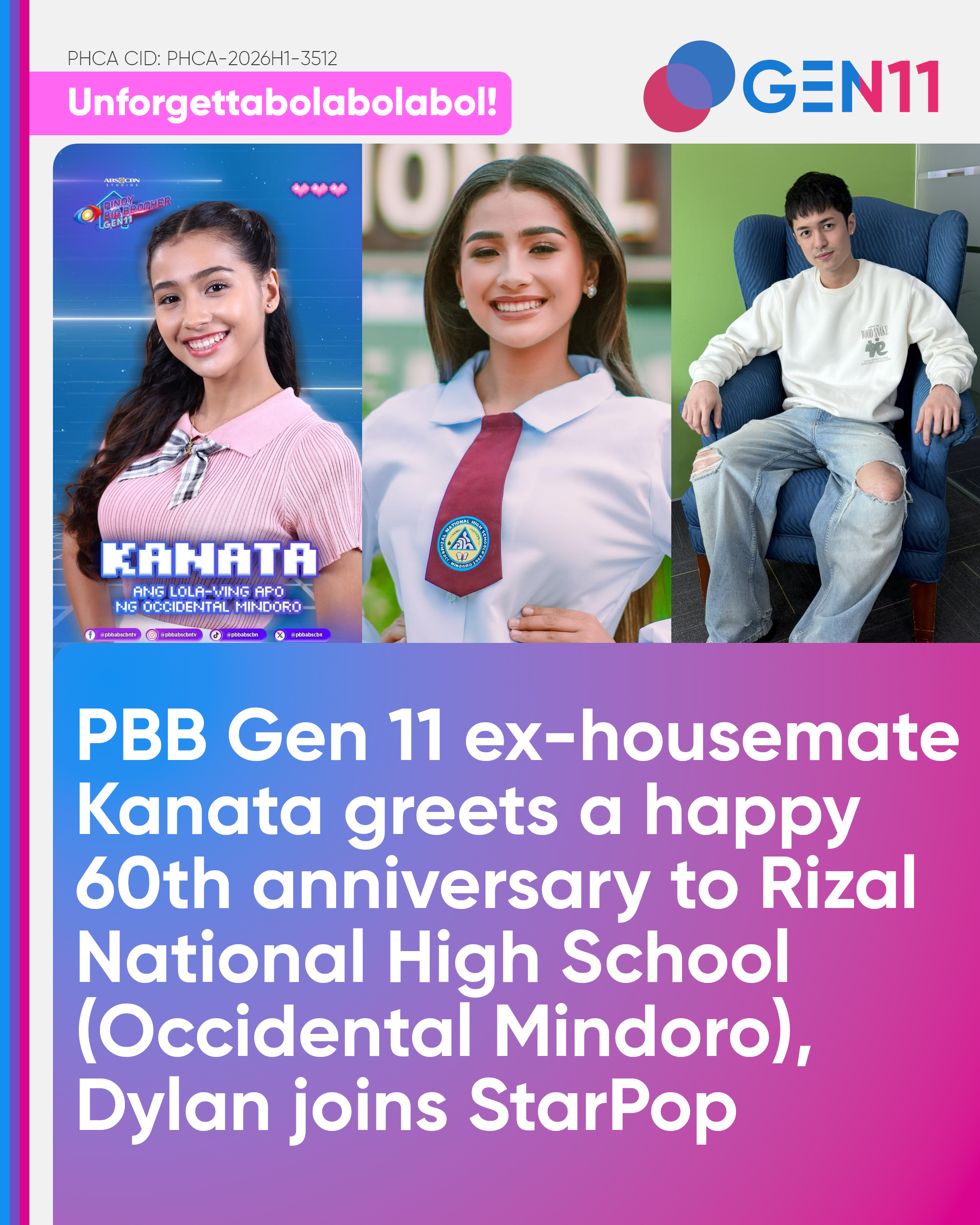 This message from DRPS PHCA and DRPS PHCA – PBB Gen 11 also saw celebratory messages from not only Kanata, but also Dylan Yturralde, who joined StarPop in a recent social media post, regarding the 60th founding anniversary of the public school in Occidental Mindoro. However, this will not only mark their founding anniversary, but also the upcoming coronation night of Mr. & Ms. Rizal NHS 2026, which will take place tomorrow at 19:00.