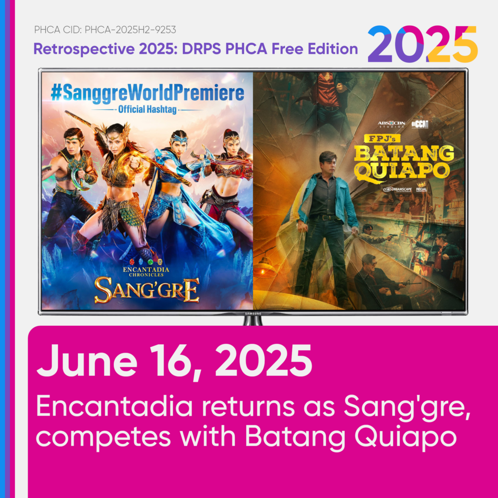 After eight years and a month from the time when a well-known fantasy TV Series on GMA Network, Encantadia (the 2016 version), aired it’s finale episode last May 19, 2017, the Filipino fantasy franchise returns once again, as GMA premiered the much-awaited Encantadia Chronicles, Sang’gre last June 16, 2025, while ABS-CBN, continued to air FPJ’s Batang Quiapo, the competitor of that series, when Coco Martin, the Primetime King playing the lead role of Tanggol, hits the start of his political era, marking the beginnings of “Tagapag-Tanggol ng Pagbabago”, wherein he begins his campaign for Mayor in Manila, with a new theme song and a new poster featuring Tanggol in a heroic-like pose.